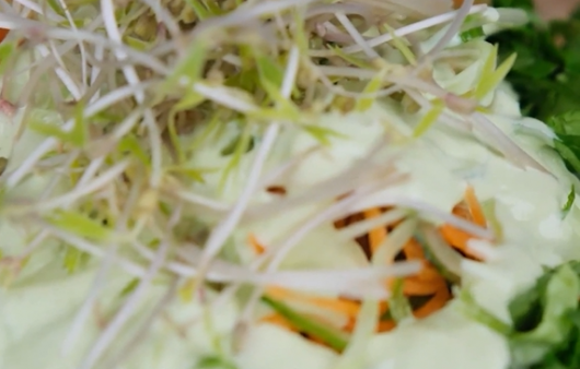 Yapılışı: Filizlendirilmiş maş fasulyesi ile ince ince kıyılan roka ve marulları, fasulyeyi, spiral ile doğranmış havuç ve salatalıkları ekleyelim.